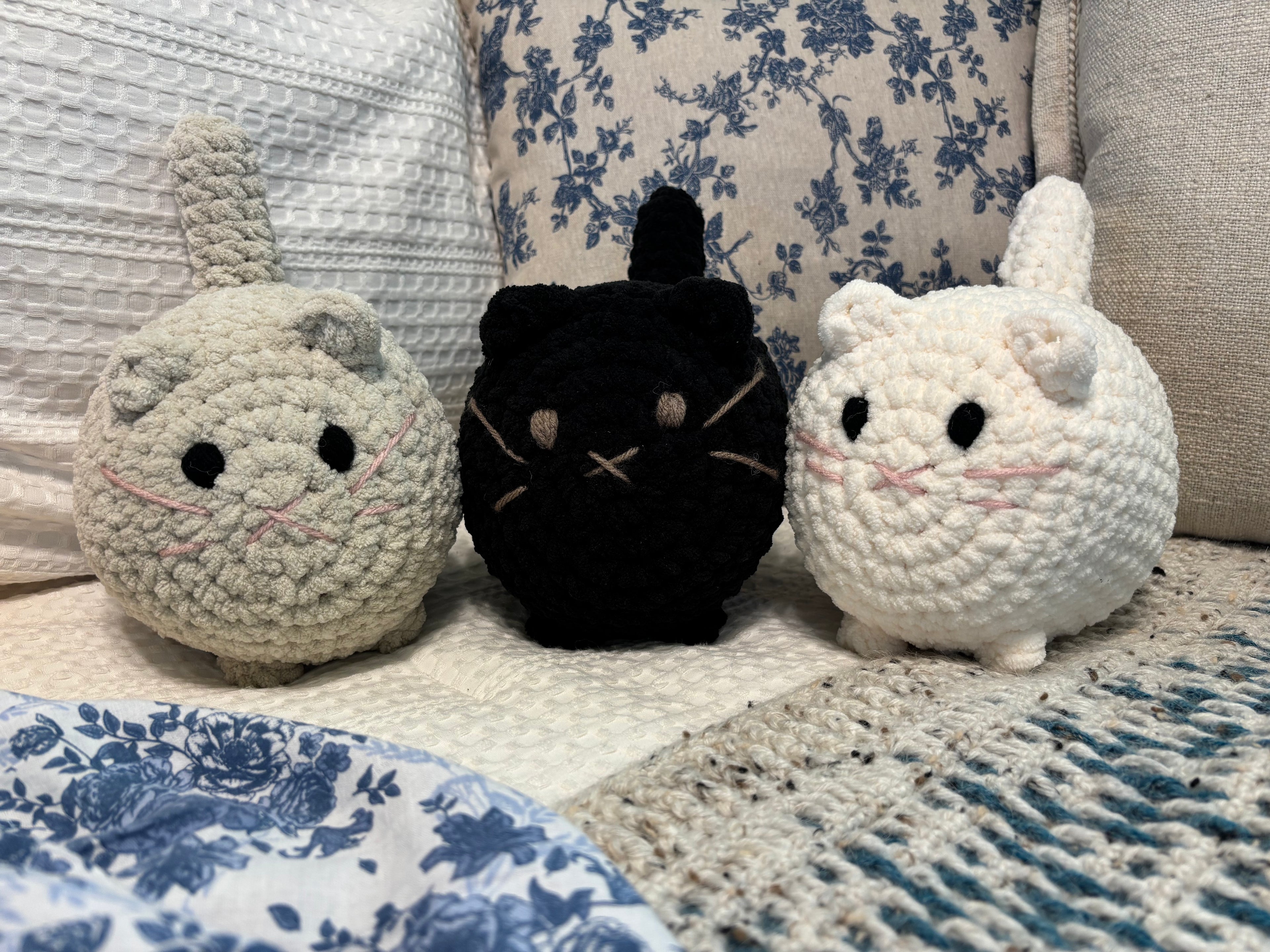 This collection features a variety of hand-crocheted plushies, each made with soft, cozy yarn and stuffed for the perfect squishy feel. Every piece is stitched with its own personality, and the eyes are fully embroidered for added safety and durability—great for gentle play, display, or gifting. Each plushie is crafted one at a time, making every animal its own unique, handmade companion.