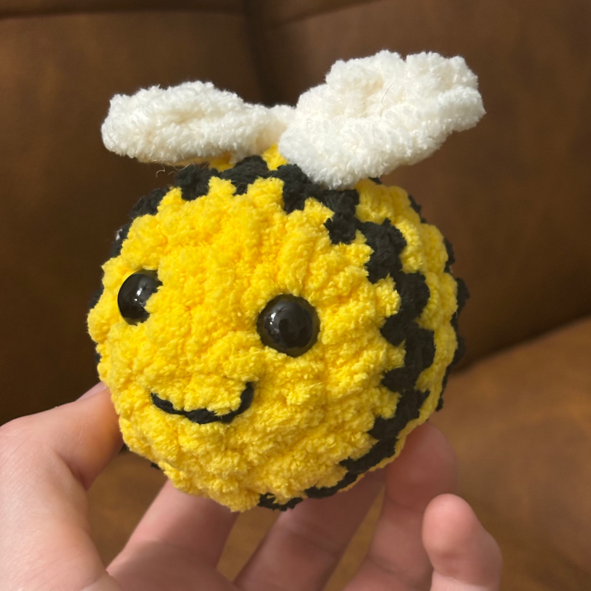 Buzzing in with sweetness and squish, meet Benny the Bee – a cheerful little crochet companion who’s always happy to see you! Lovingly handmade with soft, velvety Bernat Blanket yarn, Benny features a tiny round body and a big embroidered smile that’s sure to brighten your day. At just 3 inches long, 2 inches tall, and 2 inches wide, he’s the perfect palm-sized pal for pockets, shelves, or gifting.