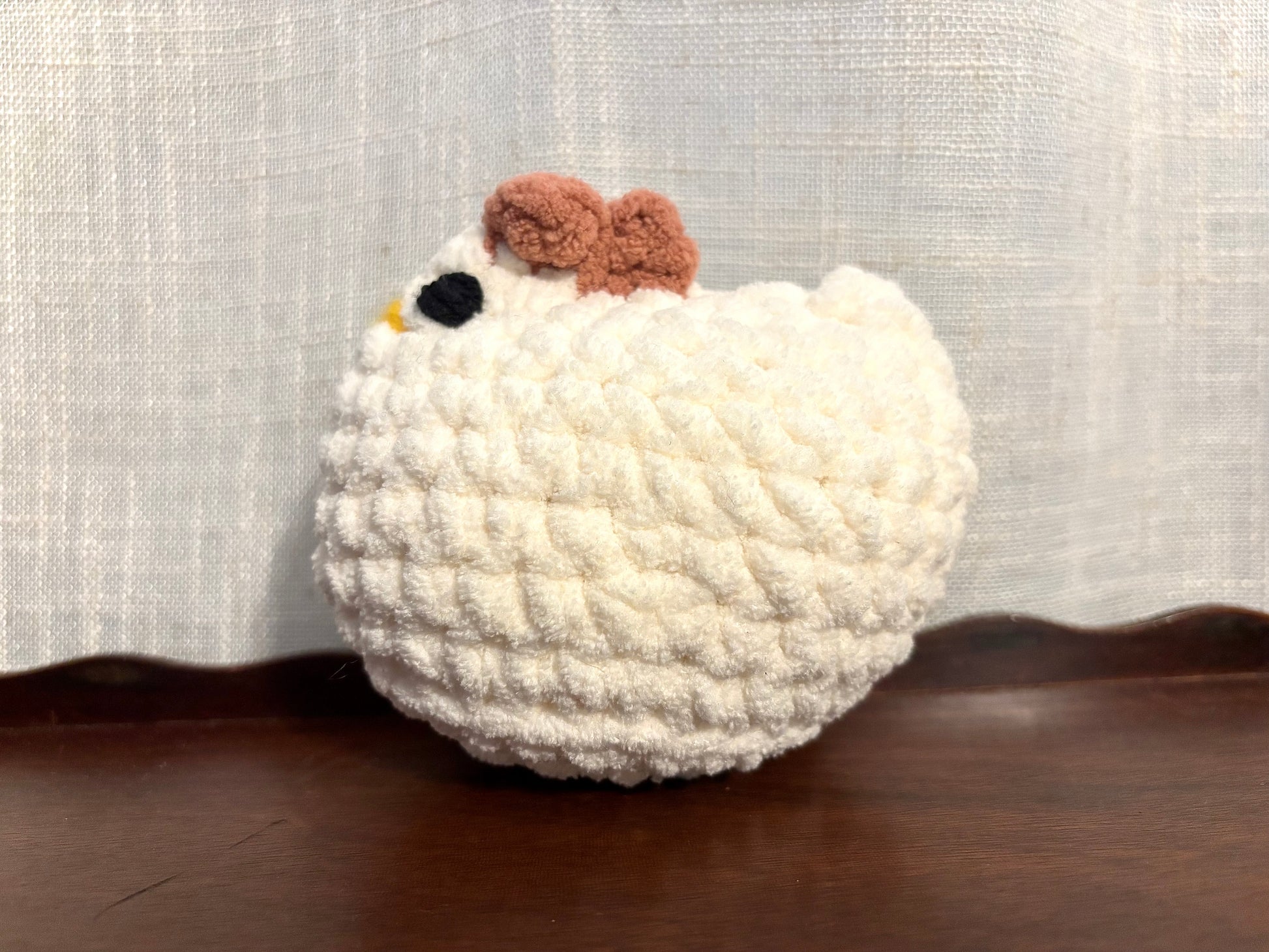 Say hello to Charley the Chicken — a soft, cream-colored crochet plush with a cozy handmade feel. Crafted from velvety chenille-style yarn and filled with premium polyfill, Charley’s small size makes him a perfect addition to any nursery shelf, Easter basket, or cozy corner.
